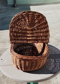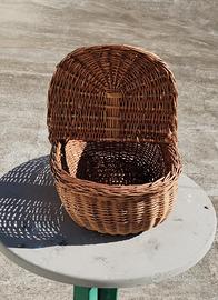 Cesto vintage ovale in vimini intrecciato, con manico e coperchi. In ottime condizioni. Altezza 31cm - Lunghezza 50cm - Larghezza 31cm