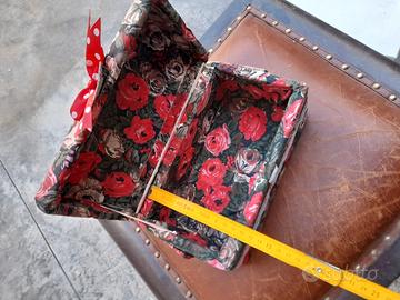 - Tessuto floreale con rose rosse e verdi.