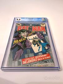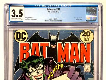 Box in plastica CGC "NUOVO" SIGILLATO CON SIGILLO DI GARANZIA ED ETICHETTA BLU ("UNIVERSAL") che custodisce il fumetto originale americano in lingua inglese BATMAN n. 251 (uscito negli Stati Uniti nel 1973) DC COMICS The Joker's Back in Town gradato 3.5 (Very Good -)