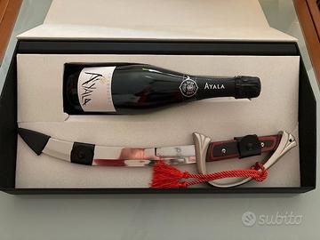 Vendo confezione nuova come da foto di Champagne Brut Majeur Extra Age Ayala Sciabolly, perfetta da esposizione o x uso professionale.