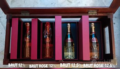 La collezione è composta da 4 bottiglie da 750 cl. , brut da 12% , brut rose' da 12% , brut da 12,5% , brut rose' da 12.5% , ognuna con il suo cofanetto e confezione intonsa.