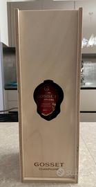 Champagne Gosset Grande Reserve Brut Geroboan 3L tenuto perfettamente con cassa legno conservato in cella a temperatura controllata disponibili altri vini pregiati per info chiedere lista valuto offerte