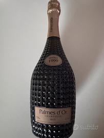 Vendo prestigiosa bottiglia di Champagne Palmes d’Or Brut Vintage 1999 della rinomata maison Nicolas Feuillatte, una delle cuvée più eleganti e rappresentative della casa. Caratterizzata dalla celebre bottiglia lavorata a rilievo, questa annata 1999 è considerata una scelta raffinata per collezionisti, appassionati o per occasioni speciali. •Formato: 750 ml •Tipologia: Champagne Brut Millesimato •Annata: 1999 •Condizioni: bottiglia integra, etichetta in ottimo stato (vedi foto) •Conservazione: (conservata in ambiente fresco e al riparo dalla luce) Ideale sia per collezione che per degustazione (con le dovute considerazioni per l’età del prodotto). •Imballaggio accurato per garantire la sicurezza durante il trasporto Per ulteriori informazioni o foto dettagliate, non esitare a contattarmi.