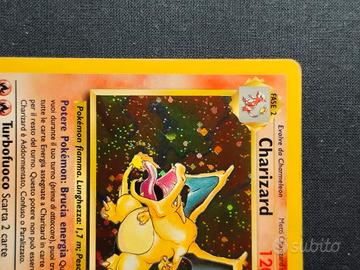 Vendo Charizard Base Set 4/102 holo Unlimited in condizioni buone per il front e moderatamente giocate sul retro, disponibili foto di dettaglio e video su richiesta.