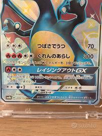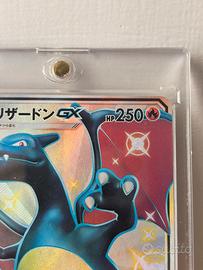 Carta Pokémon originale giapponese Charizard GX Shiny Full Art (209/150 SSR) dal set Ultra Shiny GX – 2018, tra le più amate e ricercate dai collezionisti.