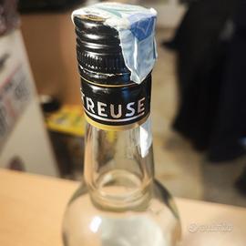 Bottiglia vuota di liquore Chartreuse Verde. - Etichetta Chartreuse verde. - Gradazione alcolica 55% vol. - Capacità 70 cl. - Prodotto in Francia.