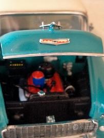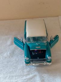 Chevrolet Nomad 1955 Danbury Mint 1:24 - Modello di Precisione - Fuori Catalogo In vendita uno dei modelli della Danbury Mint: la 1955 Chevrolet Nomad in scala 1:24. Marchio: Danbury Mint (Alta Gamma). Materiale: Metallo pressofuso pesante con finiture cromate autentiche. Colore: Bicolore Turchese (Teal) e Bianco, fedele alla verniciatura originale dell'epoca. Dettagli Motore: Cofano apribile che rivela il motore V8 completamente cablato, con tubi, fili delle candele e blocco motore verniciato (vedi foto). Interni: Abitacolo ultra-dettagliato con sedili bicolore, cruscotto rifinito e pavimentazione realistica. Parti Mobili: Portiere con cerniere a scomparsa, cofano motore e il rarissimo portellone posteriore sdoppiato perfettamente funzionante (visibile in foto). Sottoscocca: Dettaglio incredibile con albero di trasmissione, sospensioni, impianto di scarico completo e ruota di scorta (vedi foto del fondo). Dimensioni e Peso: Misure: Lunghezza circa 20,5 cm | Larghezza circa 7,5 cm. Peso: Circa 650 grammi (molto solido e pesante rispetto ai modelli economici). Condizioni dell'oggetto: Difetti: Dalle foto il modello appare in ottime condizioni generali. La vernice è lucida e le cromature sono brillanti. Non si notano mancanze di fregi o rotture evidenti. Nota: Venduto senza scatola originale. Data la delicatezza e il valore dei modelli, l'imballaggio sarà eseguito con pluribal, protezioni per le parti mobili, scatola robusta). Spedizione tracciata e assicurata. Disponibile anche per ritiro a mano per chi lo preferisce.