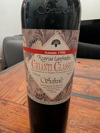 Vendo bottiglia originale di Chianti Classico Riserva Langfredini 1986 – Selvole (Vagliagli, Siena). ✔ Annata 1986 (oltre 35 anni) ✔ Denominazione DOCG ✔ Bottiglia integra e originale ✔ Etichetta storica anni ’80 Perfetta per: collezionisti di vini vintage arredamento enoteca / locale regalo per nati nel 1986 ⚠️ Venduta come oggetto da collezione, non garantita la bevibilità. Disponibile per ritiro a mano o spedizione. Prezzo: 90 € trattabili
