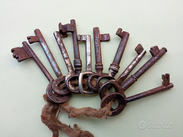 Lotto di chiavi vintage anni 50 In ferro forgiato Con il loro bellissimo colore di vissuto Tutte funzionanti Per aprire porte o comodini e comò 10 pezzi in ottime condizioni