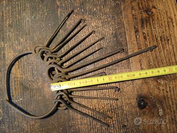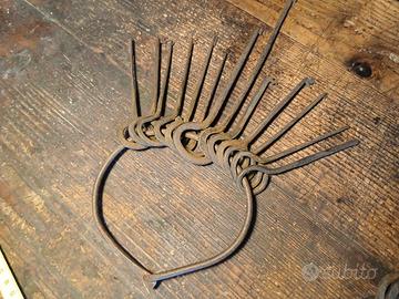 un set antico di chiavi scheletriche o grimaldelli da fabbro forgiate a mano . Venivano utilizzate in antichità dai fabbri per aprire,sbloccare e sistemare le antiche serrature di piccola e media taglia ,come piccole e medie serrature e lucchetti . unite da un anello anche esso forgiato a mano