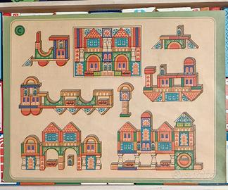 Gioco di costruzioni in legno vintage. Ottime condizioni, scatola rovinata, come da foto 1.