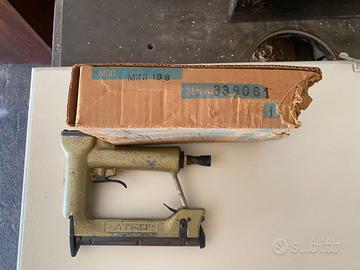PISTOLA CHIODATRICE AD ARIA COMPRESSA MODELLO "ATRO" MINI 18 S SERIE 339061, NUOVA, COMPLETA DI NUMERO 7 CONFEZIONI DI SPILLETTE DA 15.000 PEZZI PER CONFEZIONE