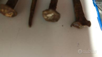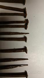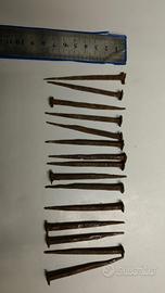 Vendo 15 chiodi antichi fatti a mano a 10 euro. Altezza 7.5 cm. Diametro testa da 9mm a 1 cm, non sono tutti uguali