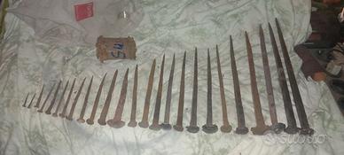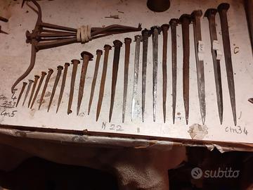 chiodi antichissimi tutte le misure da 2,5 cm fino 33cm da 11 cm '12 cm tantissimi articoli varie costruzioni in chiodi antichissimi chi interessa mandare il tuo numero telefonico ché dopo telefono io Ernesto Rota ritiro a domicilio Strozza via Trieste