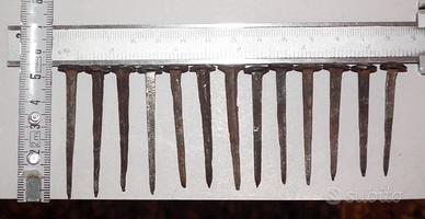 Chiodi in ferro forgiati a mano quadrati con la testa tonda, conservati.