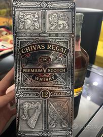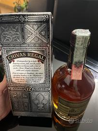 Collezionisti e amanti del whisky. Vendo una splendidabottiglia di Chivas Regal Premium Scotch, invecchiato 12 anni. Questa bottiglia è stata acquistata circa 30 anni fa, rendendola un vero e proprio tesoro per gli intenditori.