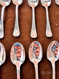 Scatola Vintage anni '80 contenente 12 Cucchaini per Moka espresso da 10 cm della linea America della Christofle. Le condizioni sono pari al nuovo con pochissimi graffi di maneggiamento e molto lucidi. Argento placcato.