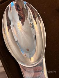 L’oggetto è nuovo mai usato, lucido con punzoni originali. Unica nota il cucchiaio nella parte concava presenta delle bollicine che ho evidenziato nella foto.