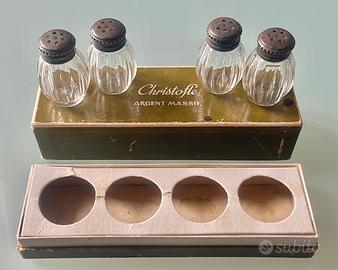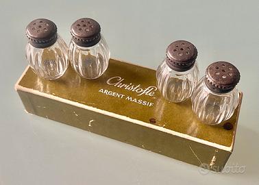 Bellissimo lotto di 4 scatoline sale & pepe in argento massicciò,e vetro tipo cristallo