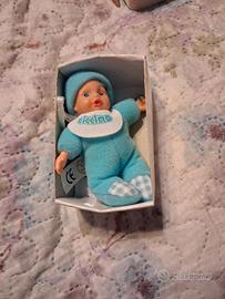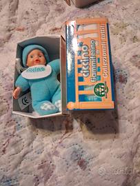 Ciccino fiammiferino nuovo colore azzurro ancora bloccato nella sua scatola. La scatola con il disegno è un po deformata