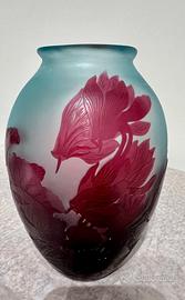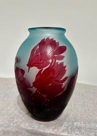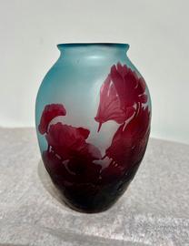 Vaso firmato Gallé , in pasta di vetro trattata alle polveri ossidanti, decorata a cammeo e rifinita alla piccola ruota, di gusto art nouveau. Autentico d'epoca, Francia, millenovecento Informazioni su questo oggetto verranno date esclusivamente di persona o al telefono