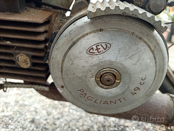 Vendo ciclomotore bici Paglianti anni 1955 tutto ORIGINALE fermo da 50 anni ottimo stato della CARROZZERIA e COLORE ORIGINALE. Solo ritiro. Per altre foto o info contattatemi. Non spedisco a meno che non lo organizzate voi. Ritiro a mano ci sta in macchina. Prezzo poco trattabile viste le condizioni generali.