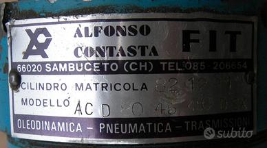 Cilindro pistone idraulico a doppio effetto con distributore. Diametro esterno mm 100, diametro stelo mm 45, alesaggio 80, corsa mm 450. Foro pistone mm 20, foro attacco cilindro mm 30. Lunghezza cilindro mm 615, lunghezza fuori tutto mm 760. Peso kg 30. Era montato su uno spaccalegna. Vendo a 190 euro. Tel. 389/4248546 o 085/8207262