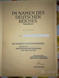 1 Attestato di Onorificenza Nazista con