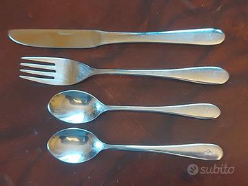 25 posate anni '70 compagnie aeree - British Airways - 4 cucchai, 4 coltelli, 3 forchette - Finnair - 1 forchetta, 1 coltello, 1 cucchiaio - Tap Air Portugal - 1 forchetta, 1 coltello, 1 cucchiaio - Austrian Airlines - 1 forchetta, 1 coltello, 2 cucchiai - Compagnia anonima - 2 forchette Amefa 18/10 - Air France - 1 cucchiaio - Lauda Air - 1 cucchiaio