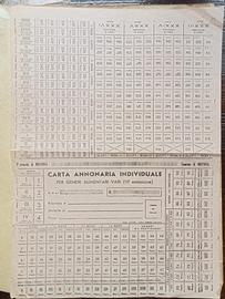 Questa è unaCarta Annonaria Individuale, un documento storico fondamentale utilizzato in Italia durante laSeconda Guerra Mondialeper gestire il razionamento dei beni di prima necessità. Nello specifico, questo esemplare è laVI emissionerilasciata dalComune di Messina.