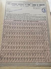 Queste tessere erano un documento personale introdotto in Italia durante la Seconda Guerra Mondiale per razionare la distribuzione di beni di prima necessità, inclusi alimenti come pane, farina, pasta e riso.
