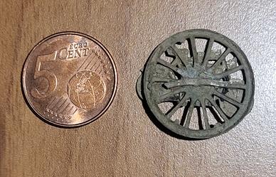 Oggetto rinvenuto con metal detector nei pressi di una vecchia strada di campagna. Probabimente appartenuta a un motociclista degli anni '30-'50, simbolo di un'epoca in cui le due ruote erano sinonimo di libertà, polvere e sogni da inseguire sotto il sole.