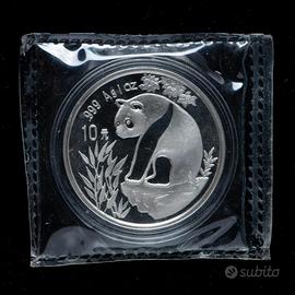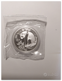 Cina 10 yuan Panda Ag 999, anno 1993 con gomma originale della zecca cinese.