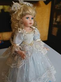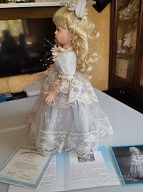L'abito di ogni principessa è realizzato con metri di tessuti pregiati, poi adornato con pizzi, trecce, nastri e "gioielli". La bambola stessa è realizzata in porcellana impeccabile e dipinte a Mano. È numerata e ha con sé i suoi certificati. Alta ca. 45 cm.