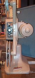Costruito negli anni ’50 in Italia, questo proiettore per pellicola 8mm è dotato di motore 110 Volt a 40 Watt e lampada 8 Volt a 50 Watt. Il suo utilizzo era finalizzato principalmente ad attività didattiche.Non testato, in allegato diverse bobine di film.