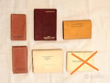 Cinque libretti vintage contenenti fotografie-ricordo in piccolo formato di città o luoghi famosi: Bolzano, Merano, S. Marino, Palazzo Reale di Madrid, Barcellona. I formati variano da un massimo di 7x10 cm ad un minimo di 8,5x4 cm. Le mini-cartoline sono tutte a colori, tranne quelle di S. Marino, in bianco e nero. Si aprono tutti a fisarmonica. Osservando con attenzione le fotografie di Merano e Bolzano, noto che probabilmente sono molto vecchie, forse primi del Novecento e che sono state colorate. Le altre sembrano più recenti, databili forse agli anni '50-'60.