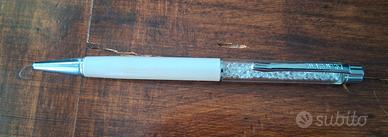 2-Penna a sfera Swarovski Crystalline. Fusto in metallo laccato bianco. Raffinati cristalli brillanti ottenuti dall'esclusiva tecnica Crystalline Swarovski. Dettagli e fermaglio cromati. Cartuccia inchiostro facilmente sostituibile tramite apertura a torsione.