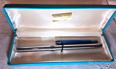 1-Penna stilografica Aurora in acciaio. Caricamento a cartuccia. Custodia originale turchese 15,7 x 5,7 cm.