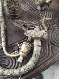 Cinque pipe indiane lavorate a mano. Quattro in metallo una in legno. Sono state acquistate per decorazione mai usate.