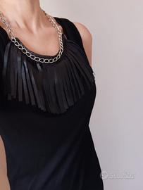 💎Collana, Cintura con frange in vera pelle e catena stile rock,dark , punk, gotico, metal, alternativo ,goth stravagante eventi concerti dark unisex