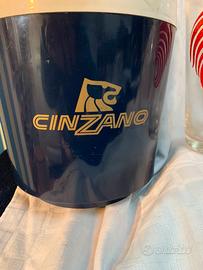 - portaghiaccio/ bottiglia CINZANO con marchio su i 2 lati in oro su fondo Bleu e fascia bianca in alto ( logo in uso da 1974 a 1990 design Landor Associates che attualizzo’ l'antico e classico leone araldico).