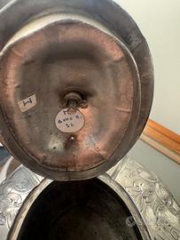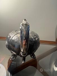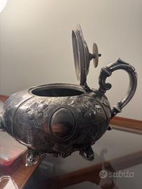 antica cioccolatiera periodo Vittoriano argentata con pomello in avorio, forma tipica forma a zucca, lavorazione incisione motivi floreali, molto bella