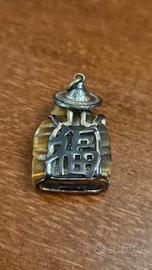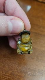 Ciondolo amuleto portafortuna raffigurante il Buddha ridente, noto in Cina come Budai. È scolpito in pietra naturale, (occhio di tigre).