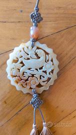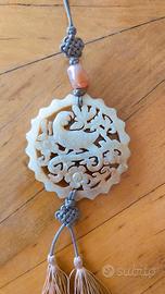 Bellissimo ciondolo antico cinese in giada, con dettagli intagliati. Perfetto per collezionisti o amanti dell'artigianato orientale.