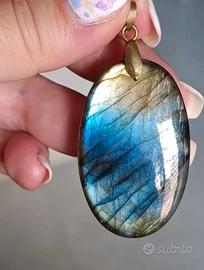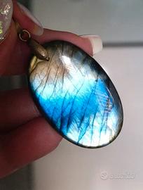 Bellissimo ciondolo a forma ovale in labradorite. I riflessi blu e oro creano un effetto davvero unico.