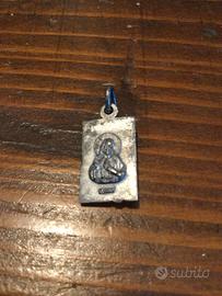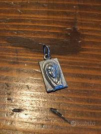 Ciondolo Maria Originale Anni 60. In argento. Perfettamente conservato, in condizioni impeccabili. Mai usato, perfetto in ogni sua parte. Sul fronte il volto della Madonna, sul retro il Sacro Cuore di Gesu. Custodito gelosamente, senza nessun segno di usura. Prezioso gioiello di arte e di fede. Da indossare, da possedere o da regalare. Un pezzo unico. Introvabile. Bellissimo.