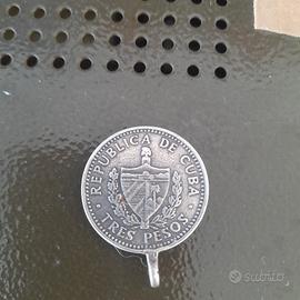 stupenda moneta da 3 pesos Repubblica Cuba raffigurante il comandante Ernesto Guevara il CHE con storica frase Patria o Morte.