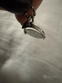 Collana vintage originale Marc by Marc Jacobs primi anni 2000 con iconico ciondolo a disco girevole. Ruotando il ciondolo appare il messaggio nascosto “I LOVE YOU”. Logo MARC JACOBS inciso sul ciondolo, chiusura con dicitura BKGP. Design raro e riconoscibile, molto ricercato, utilizzabile anche come fidget elegante. In buone condizioni vintage con normali segni del tempo. Confezione originale non presente.