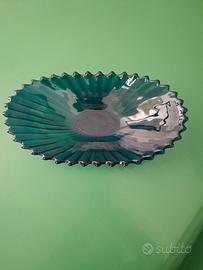 Ciotola centro tavola in vetro color turchese scuro Produzione Inghilterra anni 1940/50 misura cm 19,5 x 35 h cm 7 circa Si assicura imballo accurato per la spedizione