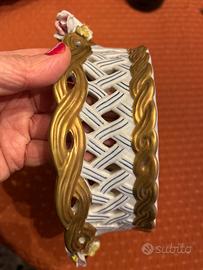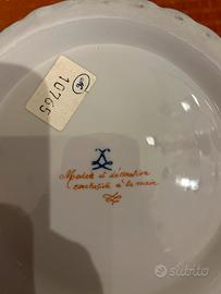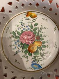 Ciotola vintage in ceramica francese dipinta a mano. Marchiata sul retro (marchio apocrifo di Sèvres è indubbiamente quello di Edmé Samson. ) misure 23 x 20 x 7,6 cm